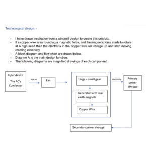 As a 10 year old, i always thought why cant we re-use the hot air that comes from the back of AC vents, possibly using it as a form of energy. Therefore for the national Manak Award I made a system which got attached to the back of an AC vent.